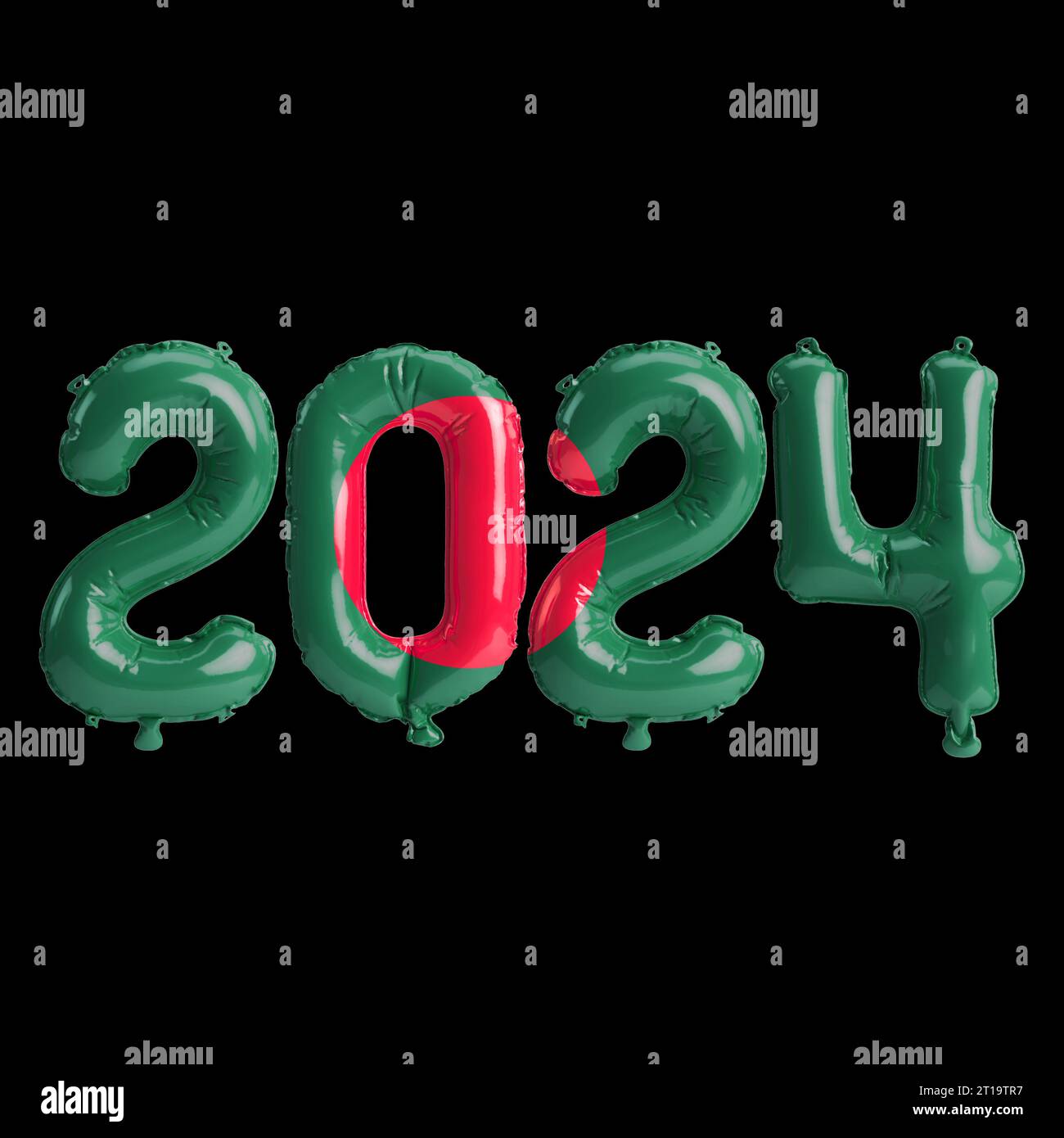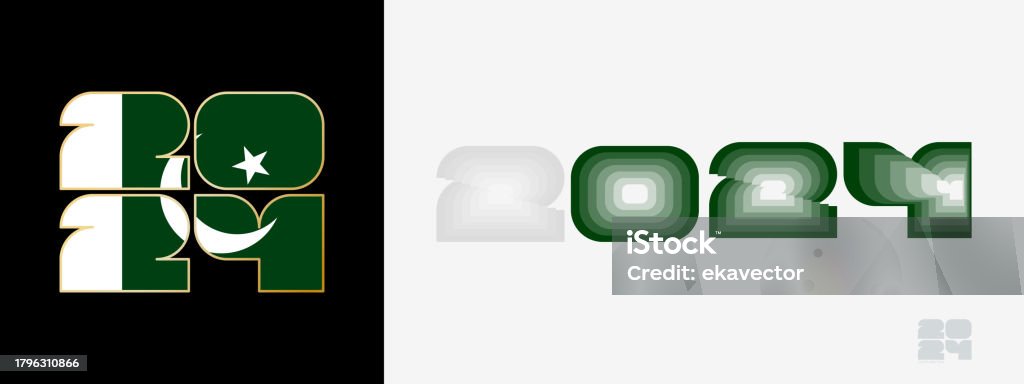 Year 2024 with flag of Pakistan and in color palate of Pakistan