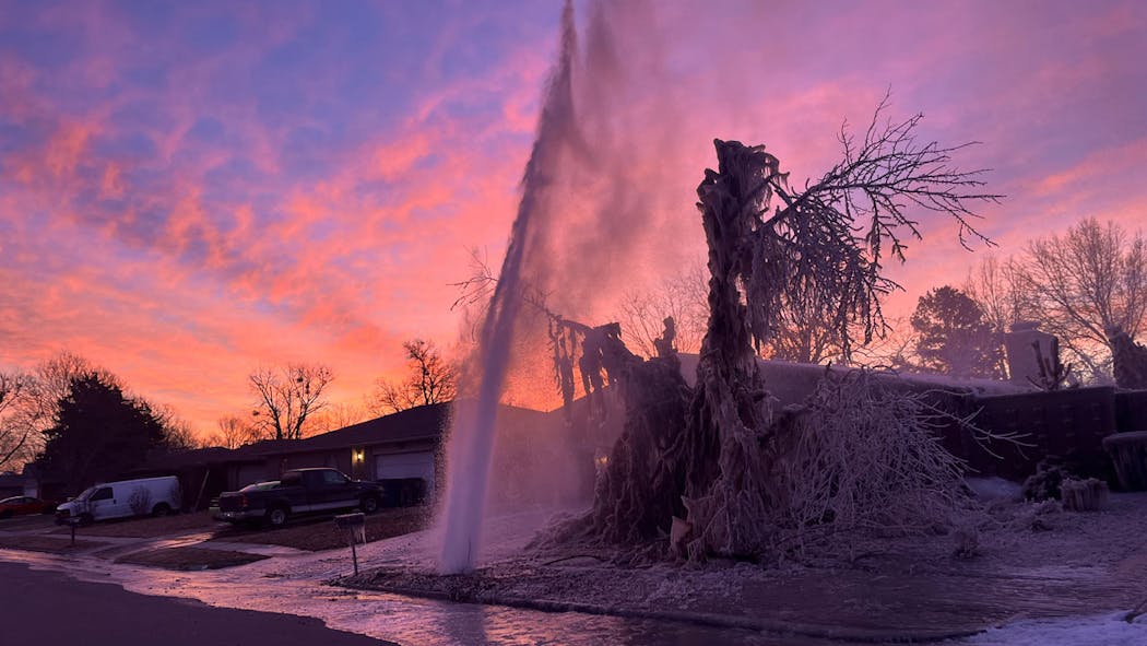 Tulsa Home Damaged, Covered In Ice After Pipe Bursts In Front Yard